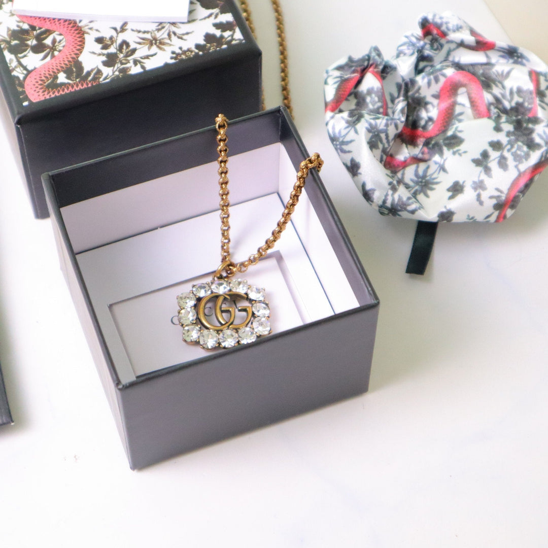 Retro Distressed Crystal Necklace with Diamonds Necklace