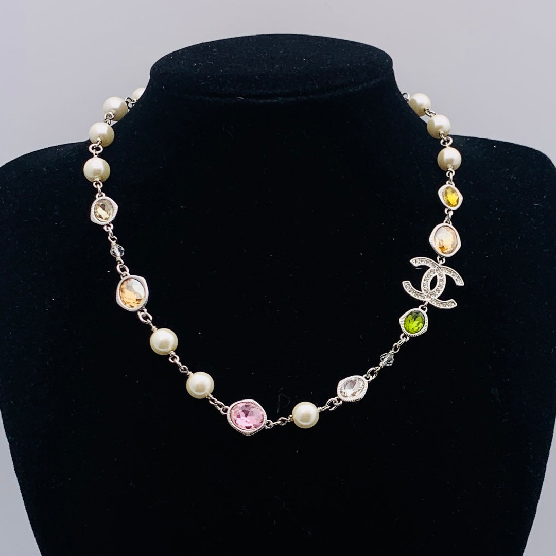 Fashion CC Colorful Diamonds Pearl Necklace