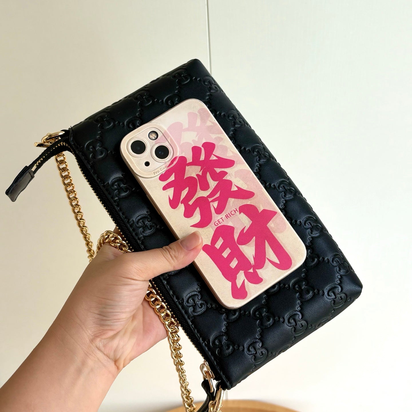Stylish Double G Embossed Zipper Mahjong Bag