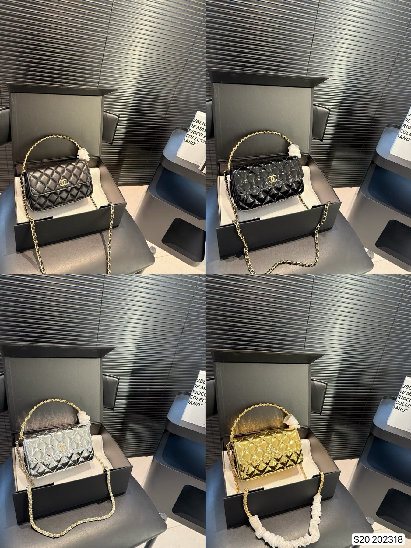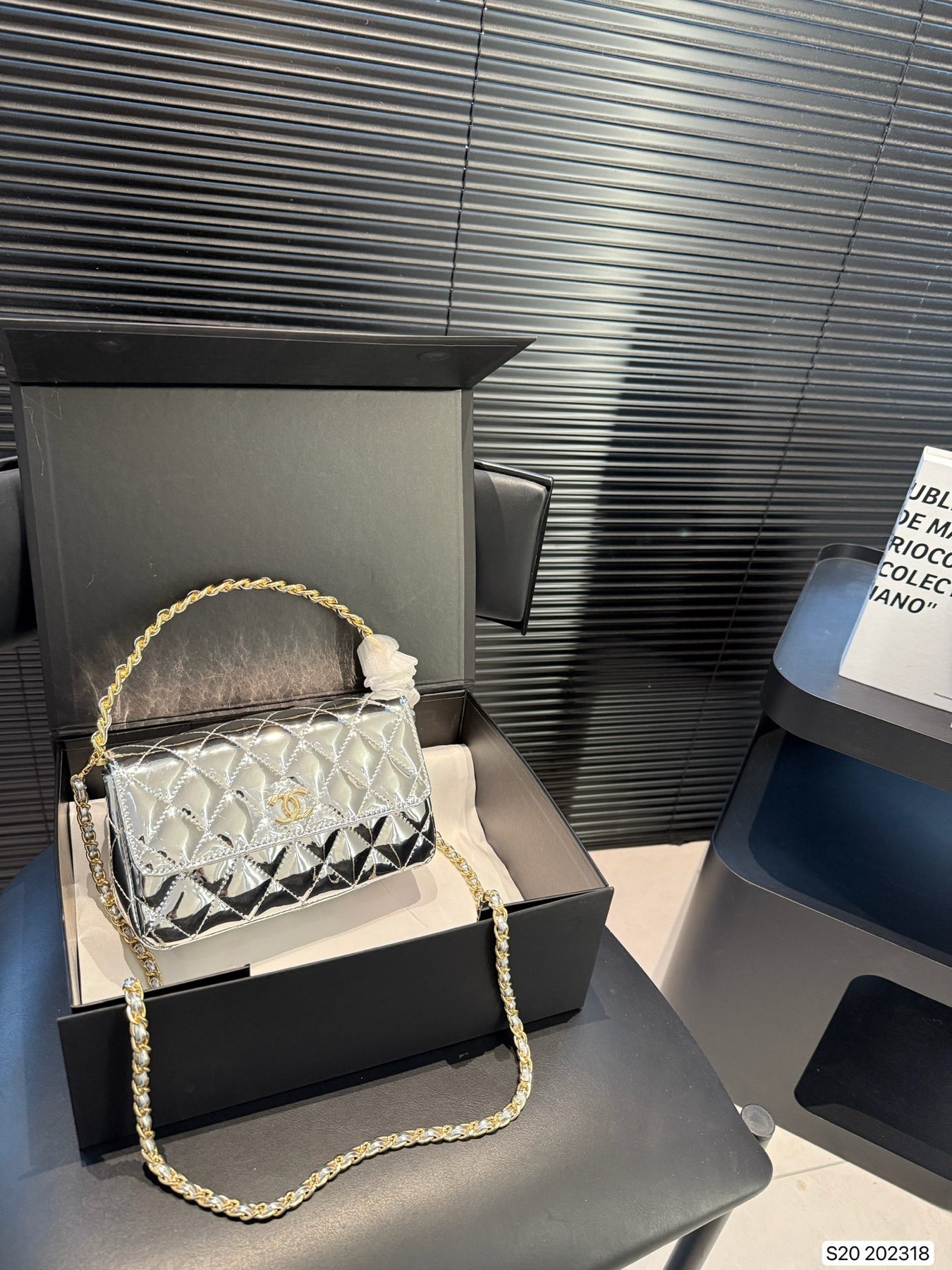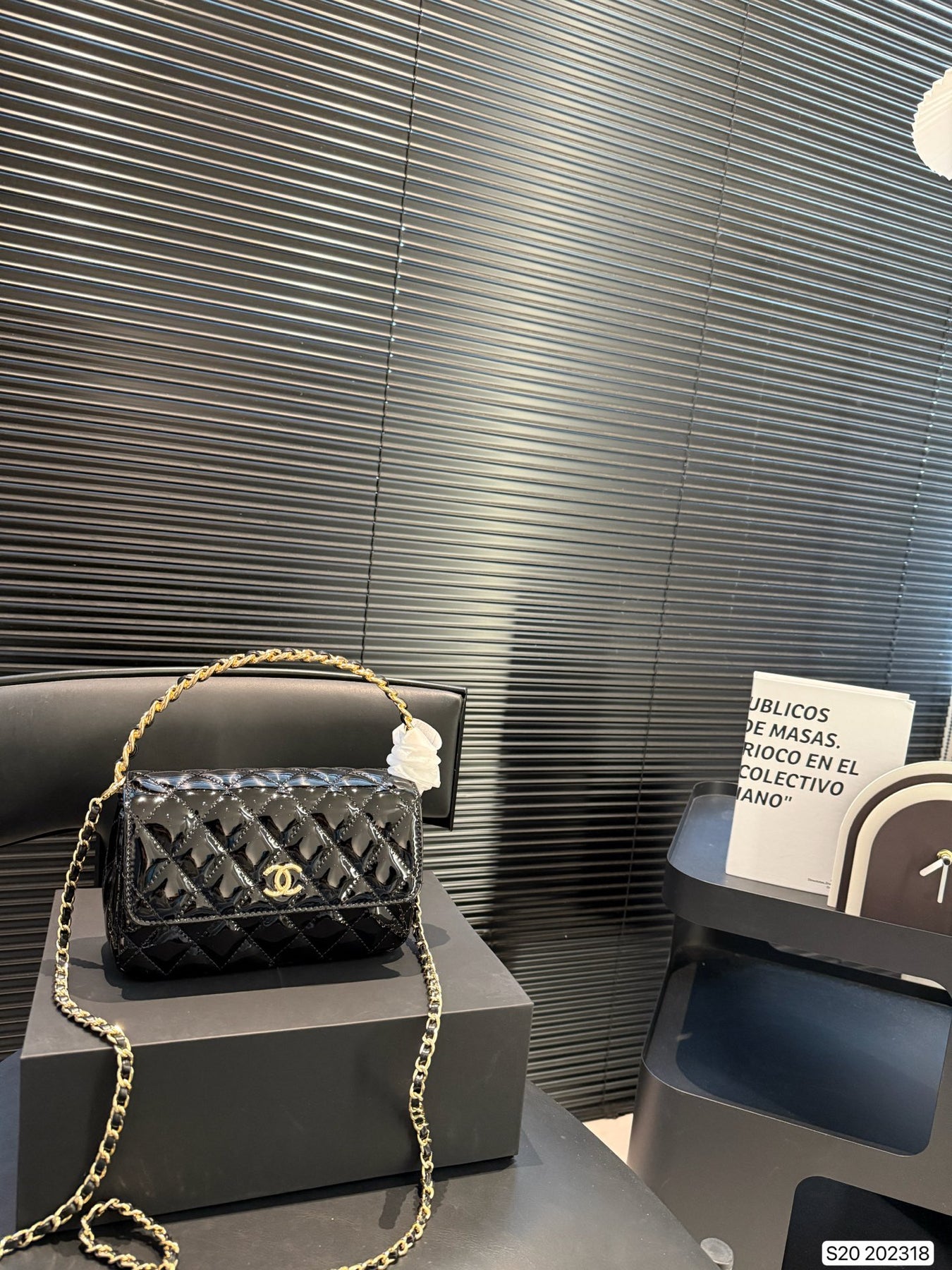 Four-Color Elegant Patent Leather Diamond-Quilted Chain Bag